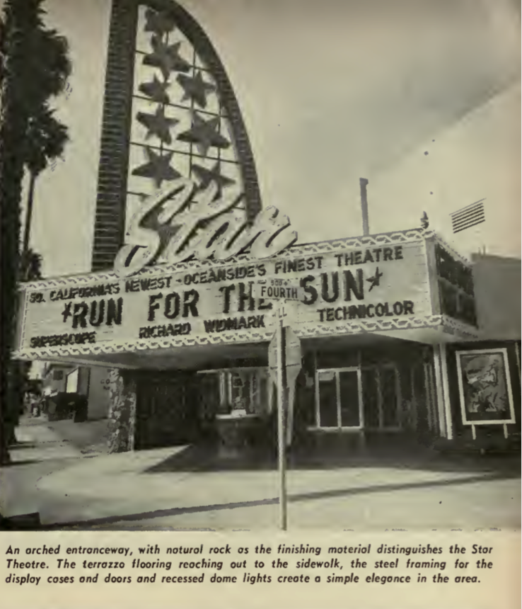 Designed by architect William Glenn Balch, the Star was from an era when neon was king and every city was building a drive-in or walk-in theater. The Star Theatre is the largest of Balch's 17 theaters that were located in the state of California and the last one that is still open. The marquee boasted being the largest in San Diego County and has been noted for its spectacular animation. It is one of the few remaining examples from its era.